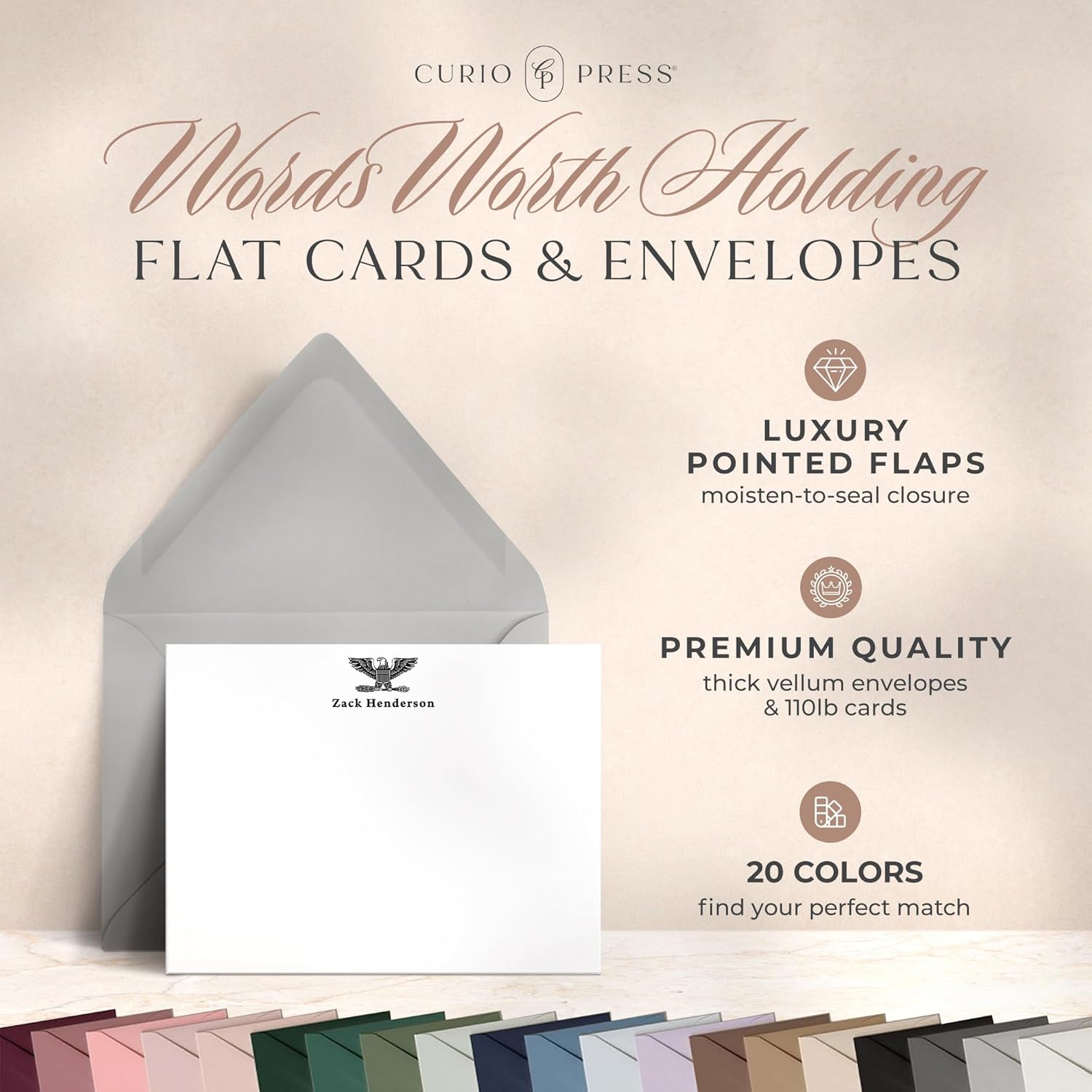 Curio Press Personalized Stationery Note Cards with Envelopes for Military Officer Ranks, Custom Not